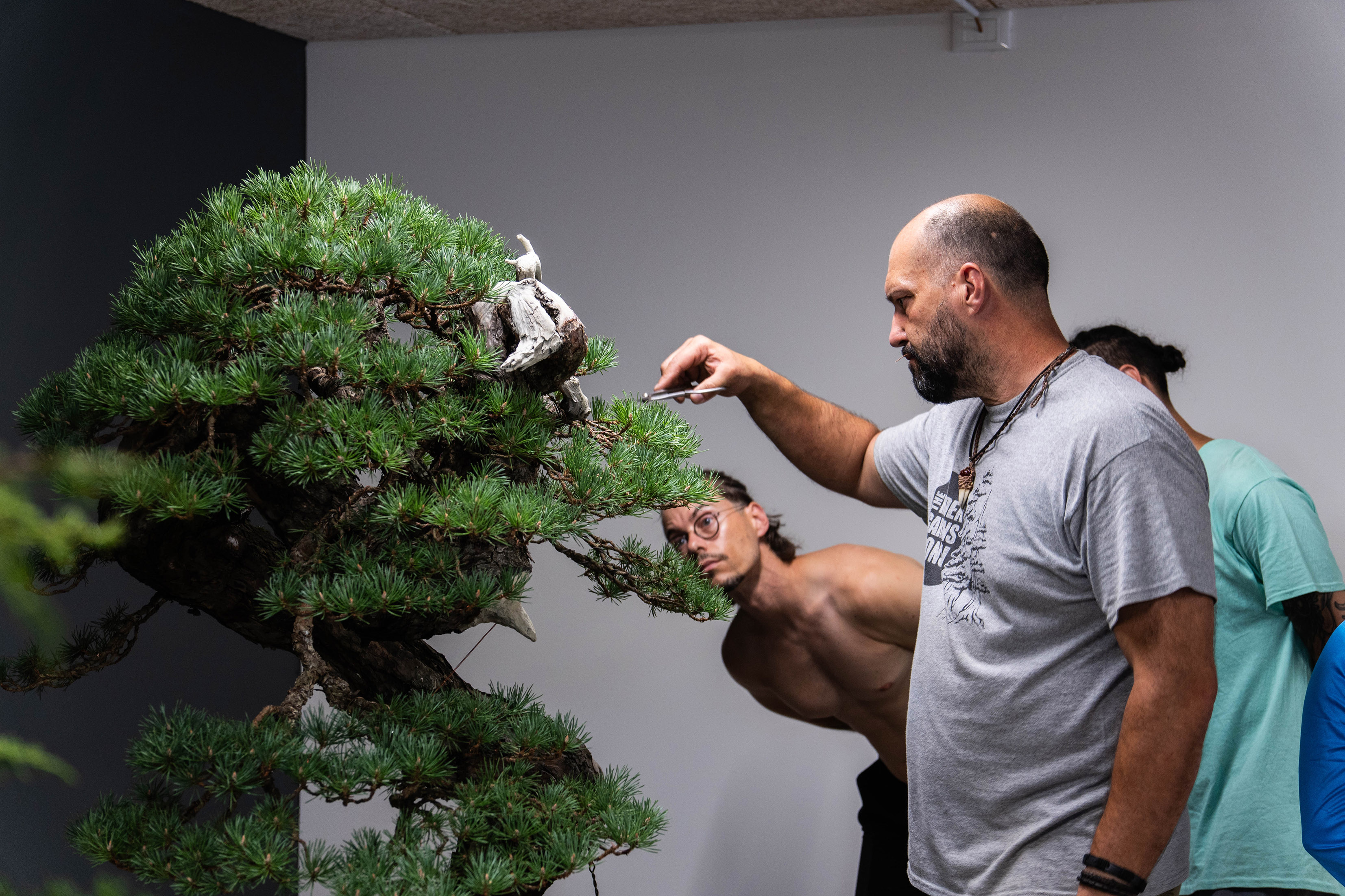 Norsk bonsaiselskap arrangerer arbeidsmøte Hageland Foss, Røyken. Forming av furu- Demo Rune